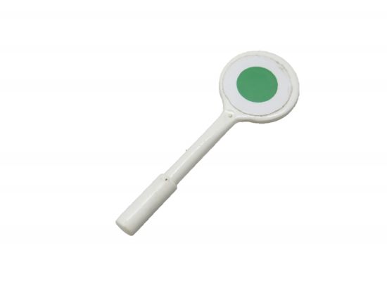 Verkehrskelle alte Version eine Seite grüner Aufkleber, andere Seite roter Aufkleber