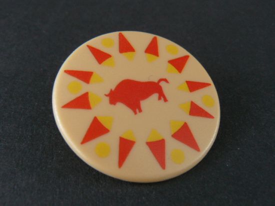 Kurzbeschreibung: Schild rund mit Aufdruck Büffel rot
